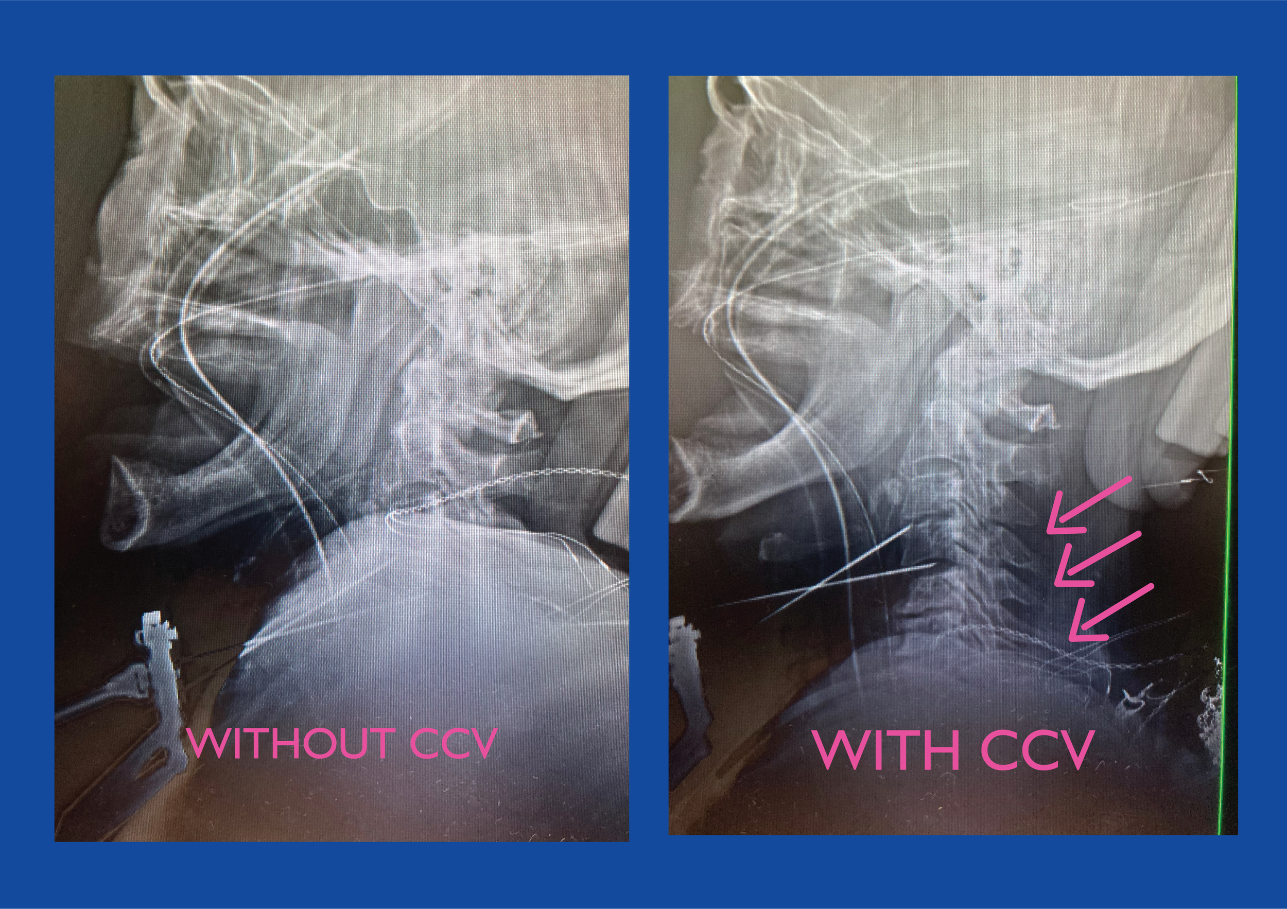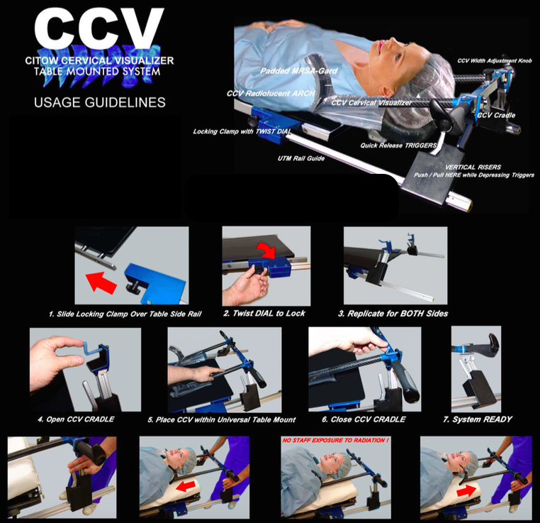Traditional methods would be to pull and tape down the shoulders, leaving many patients bruised and sore following these procedures. He decided to find a better way — one that was easier on the OR team and patients. Several design concepts later, the radiolucent carbon fiber CCV was born and the Universal Table Mount was later developed to complete the CCV System.
